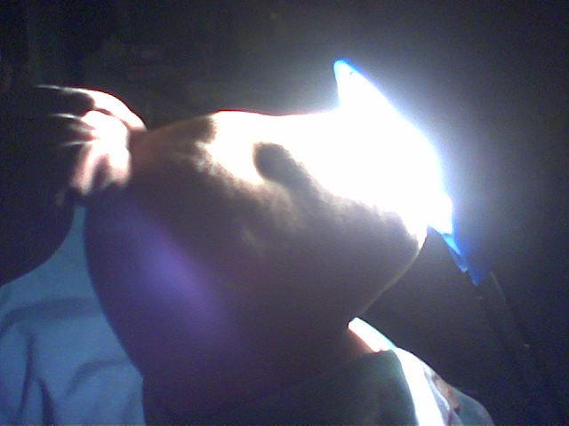 DH bends over next to a light bulb